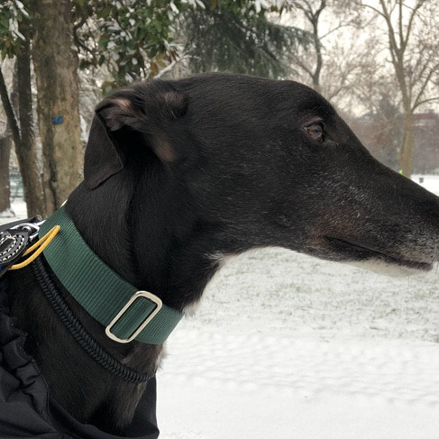 REGULAR MARTINGALE: Has a webbing loop that, when pulled, will tighten a limited amount to prevent slipping out (or backing out) of the collar. Put on over the head and adjust to fit. Head and neck of dog need to be measured for correct sizing.