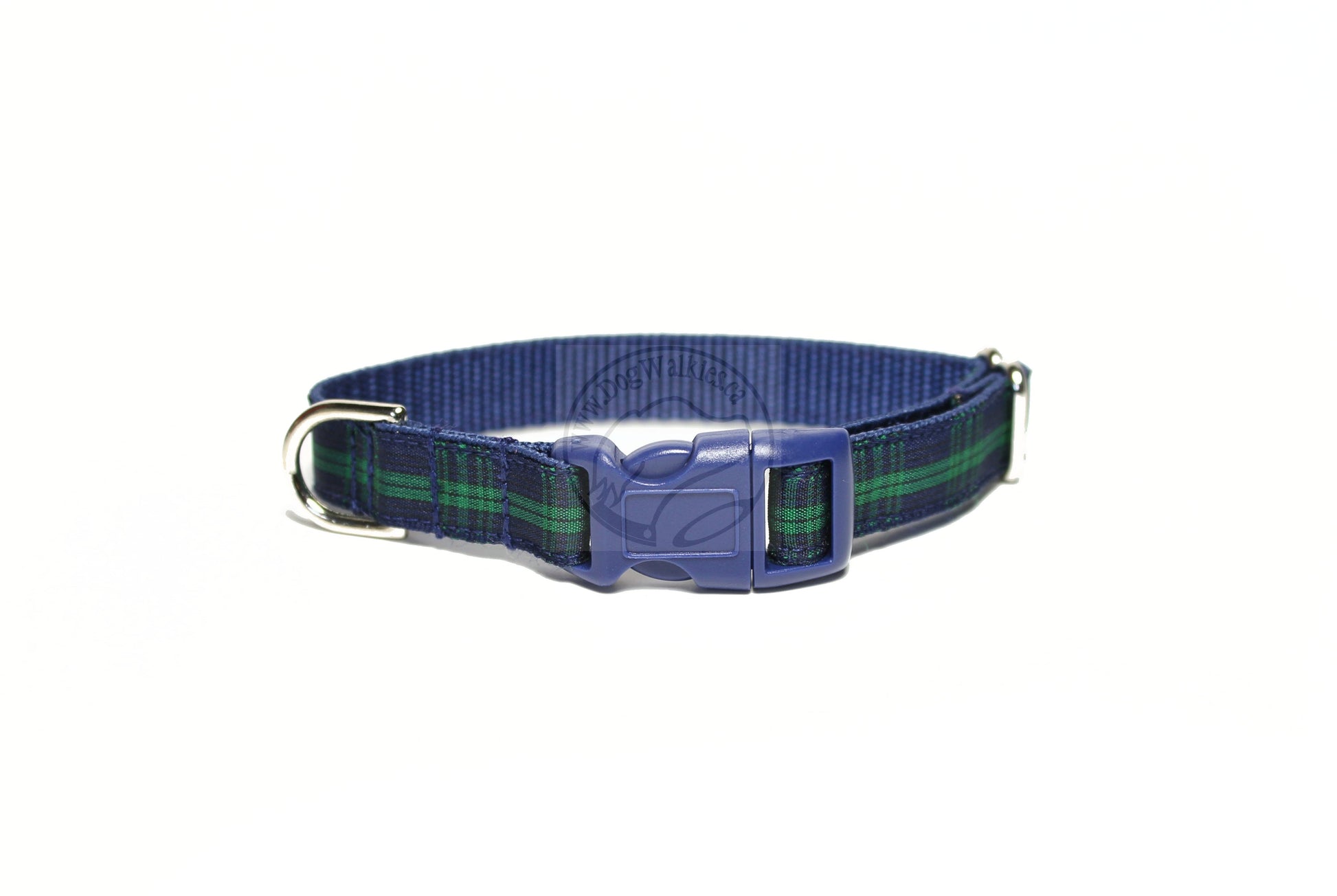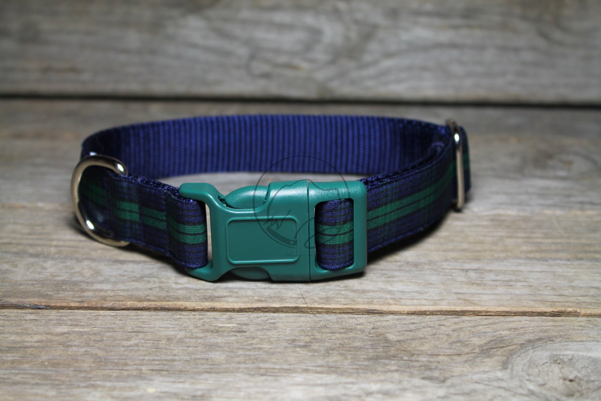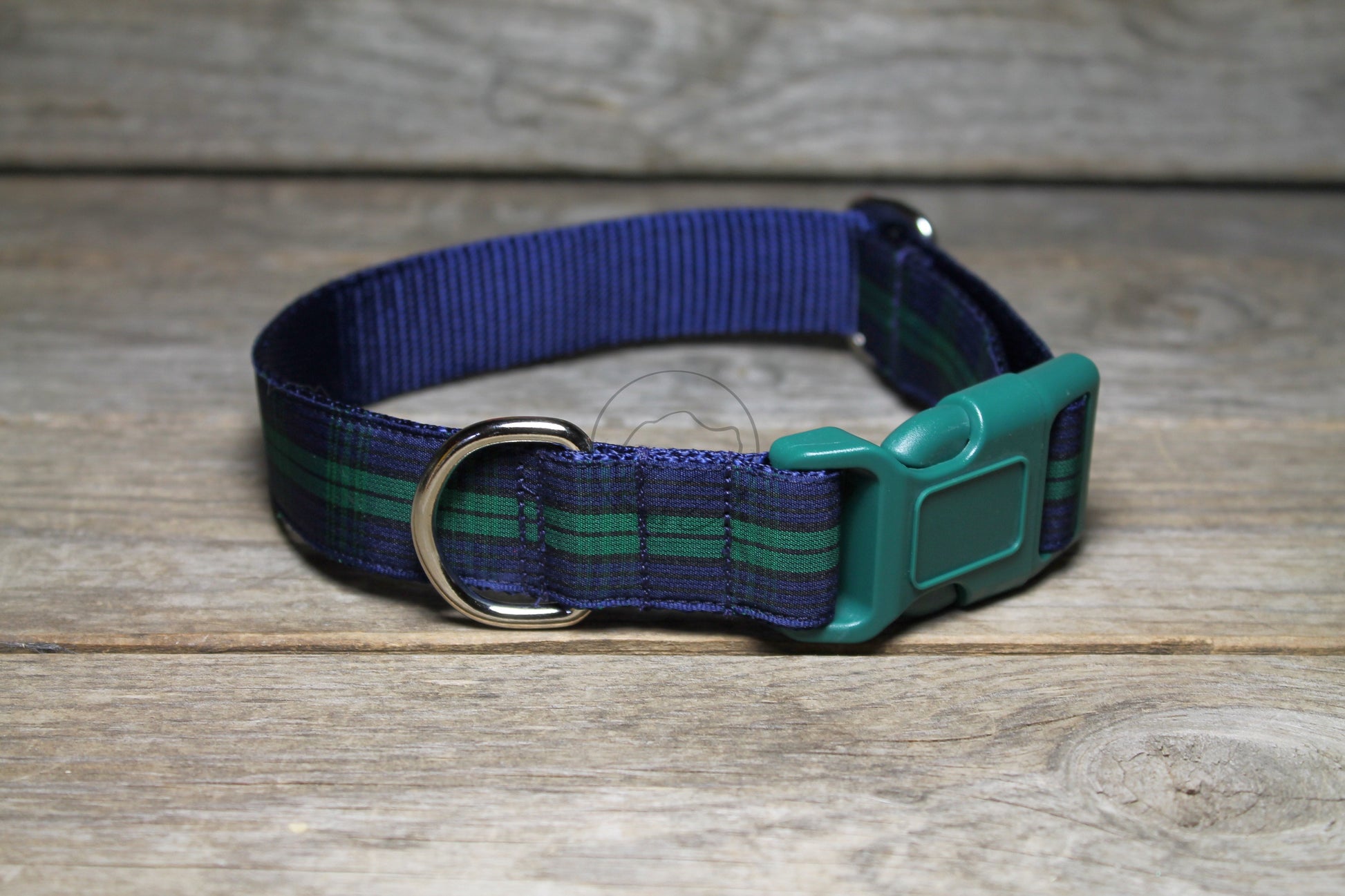 Dark and mysterious. The navy blue, dark green and black of this government tartan is awesome. Paired with a deep navy webbing back. We have two variations of this tartan, this one and the Blackwatch Green Edge. Matching leashes are also available though this link.