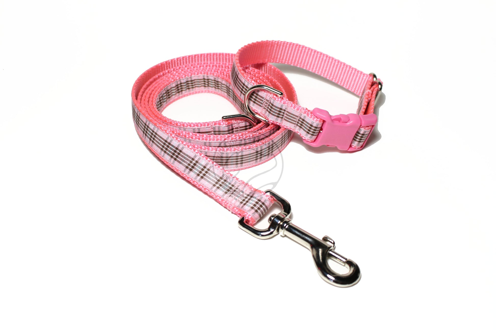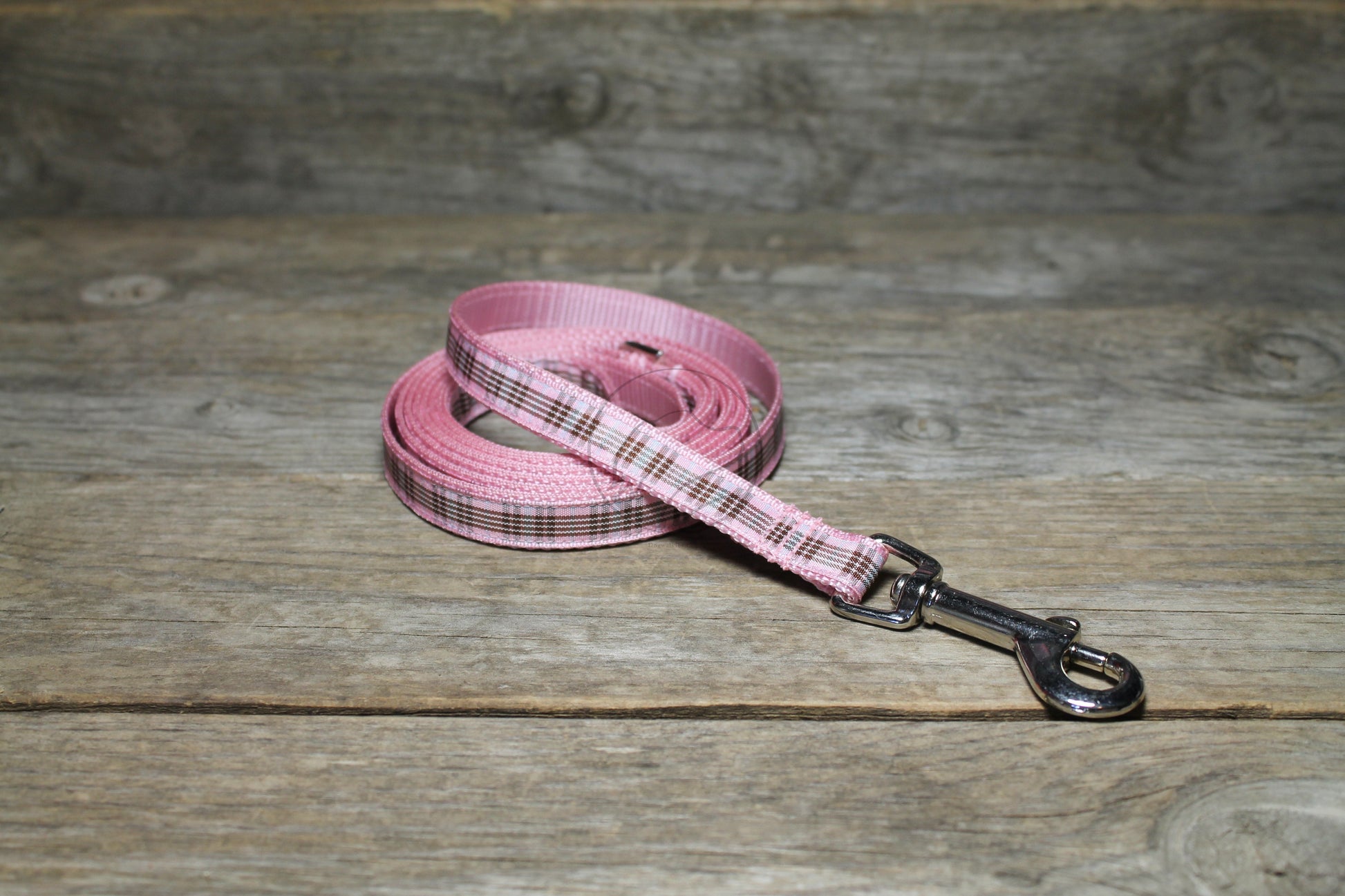 Matching plaid leash for our Pink Raspberry Plaid tartan dog collars, your choice of width. These tartan ribbons are all the way from Scotland and handmade into leashes just for your pup! :) All collars pictured are sold separately (collar link here).