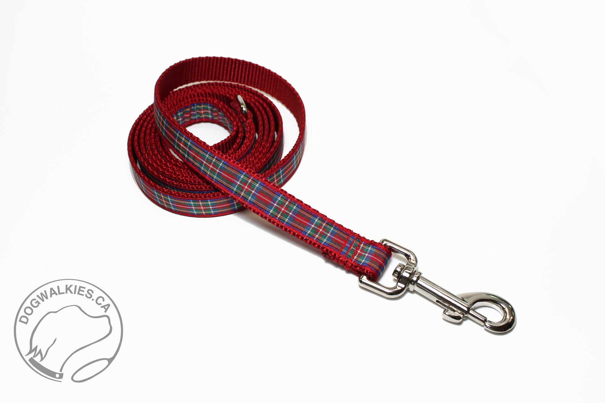 Matching plaid leash for our Stewart Royal clan tartan dog collars, your choice of width. These tartan ribbons are all the way from Scotland and handmade into leashes just for your pup! :) All collars pictured are sold separately; linked here.