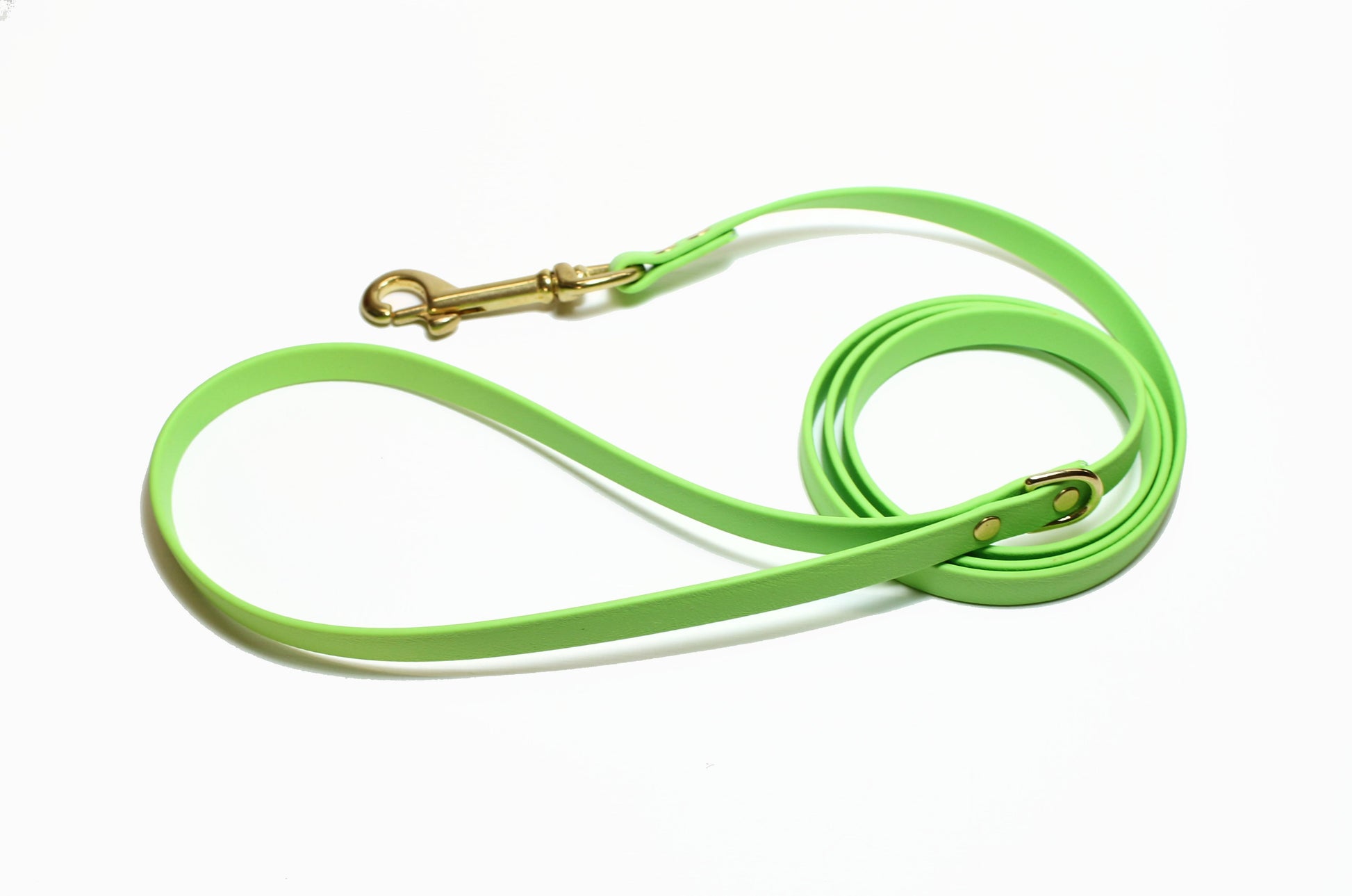 This fun zesty green light weight leash is in our vibrant Lime Green colour. Made with our lightest weight Genuine Biothane material, it's a perfect choice for medium and smaller dogs. Collars pictured are sold separately.