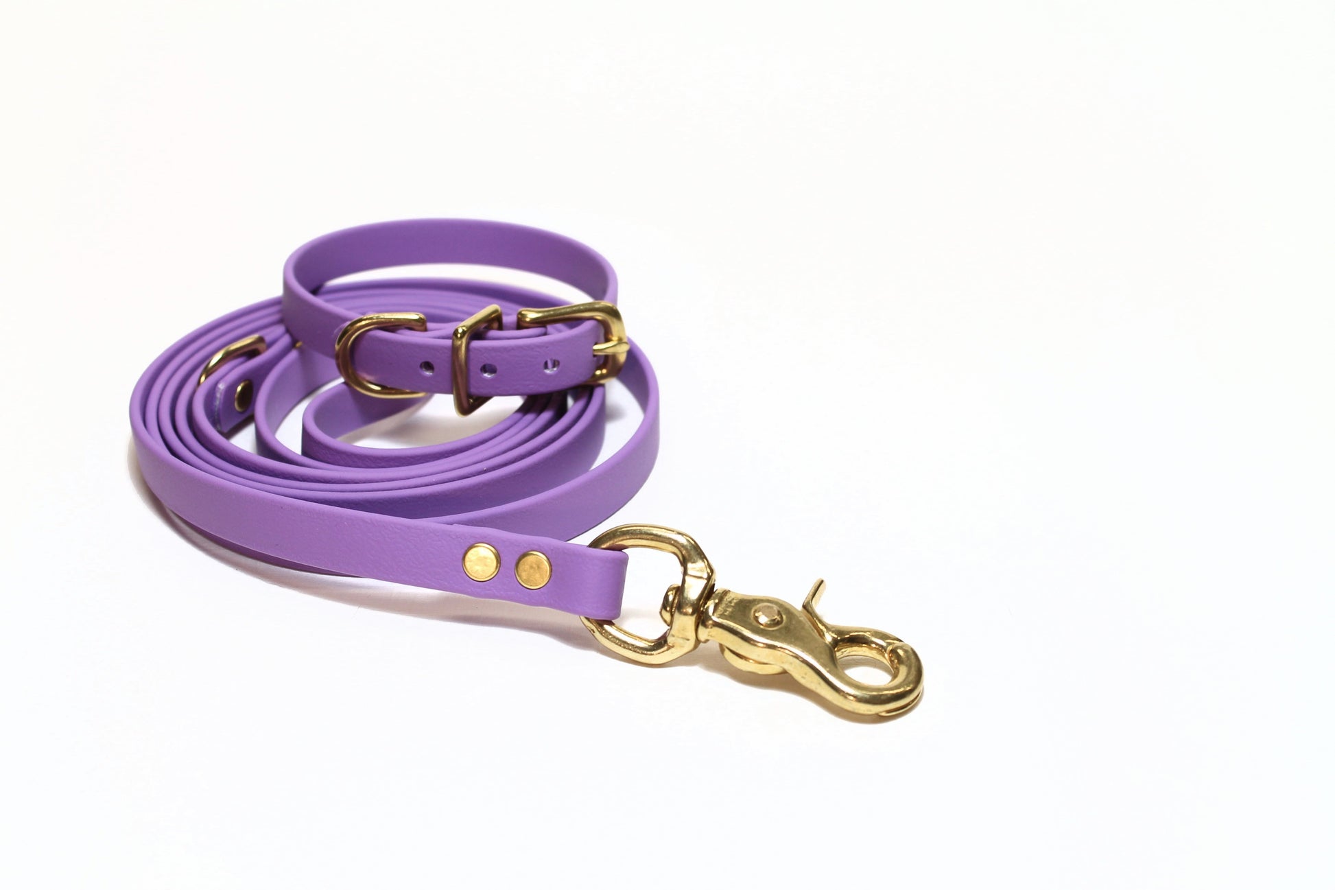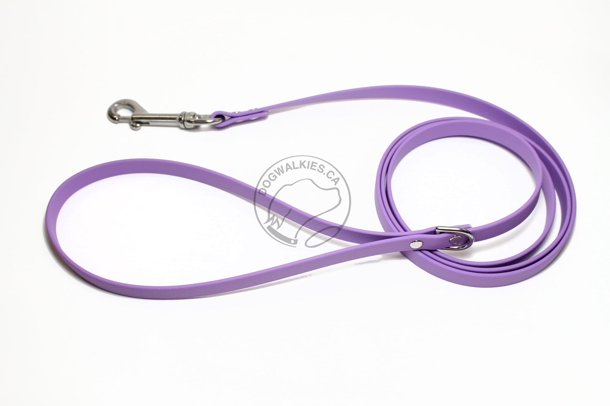 Amethyst Orchid Purple! This shade of orchid purple is an amazing warm inviting purple-pink. This leash is thin 1/2" (12mm) wide, Genuine Biothane in our shade of Amethyst! Made with our lightest weight Genuine Biothane material, it's a perfect choice for medium and smaller dogs. Collars pictured are sold separately.
